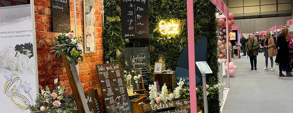 We reused items that had come back from exhibitions, created new styles of signage to not only reach out to the couples that love rustic weddings, but to those who like a bit of a modern taste and tried out my new digital business cards.